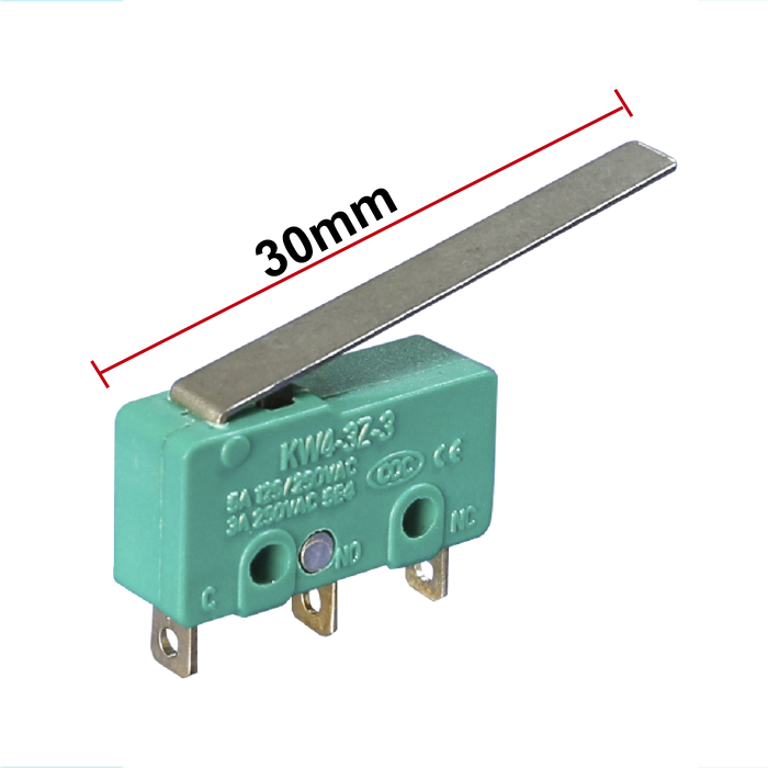 MICROSWITCH PEQUEÑO 3PINES 5AMP "PULSAR" 125/250VAC CON PALANCA LARGA (COLOR VERDE)
