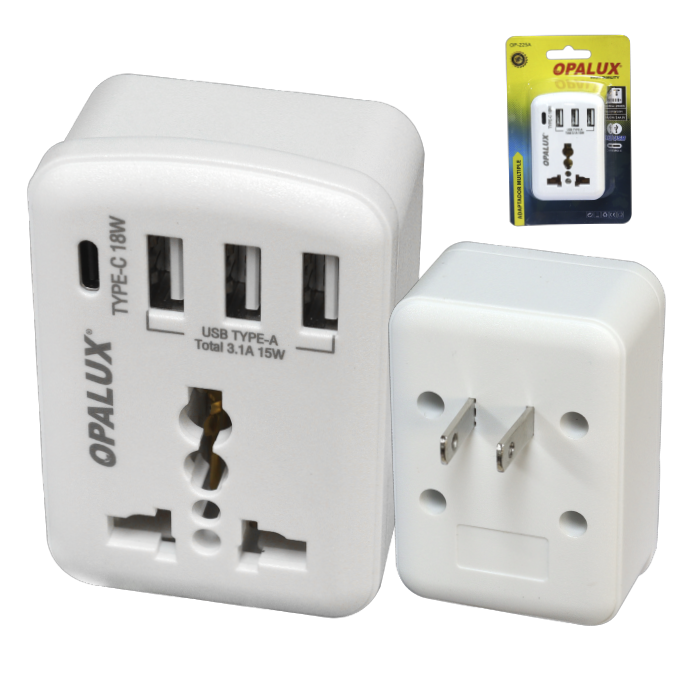 ● Potencia: 2500W ● Color: blanco ● Corriente máx.: 10A/3.4A 5V ● Voltaje: 110-250V ● Carcasa alto impacto ● 120 x Cj.