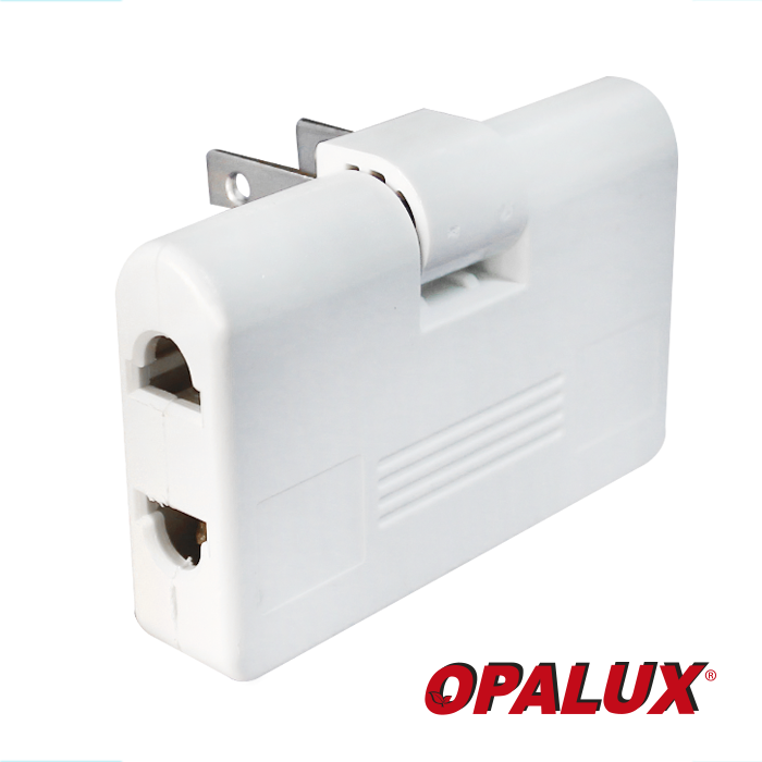 ADAPTADOR TOMA TRIPLE ENCHUFE GIRATORIO PLANO "OPALUX" 2JACK UNIV.1JACK DE COLOR BLANCO 10AMP 250V AC(2P). BOLSAX50. MASTERX300