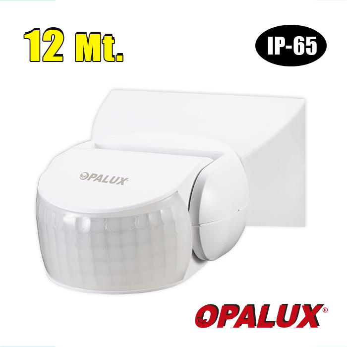 SENSOR DE MOVIMIENTO "OPALUX" 180° DE 12 MTS INFRARROJO 220VAC IP65
