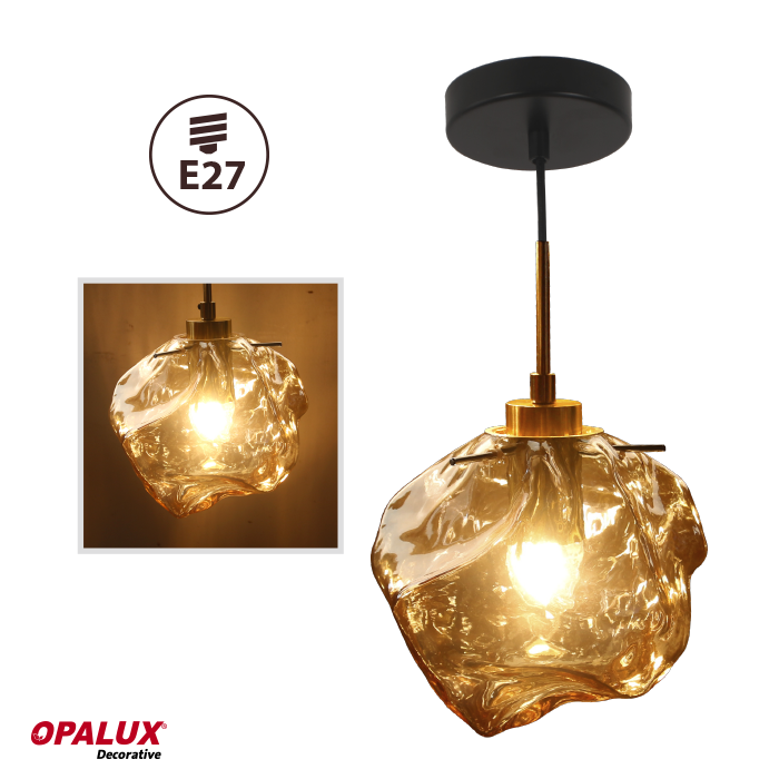 LÁMPARA COLGANTE “OPALUX” STONE Color: Cobre + Ámbar